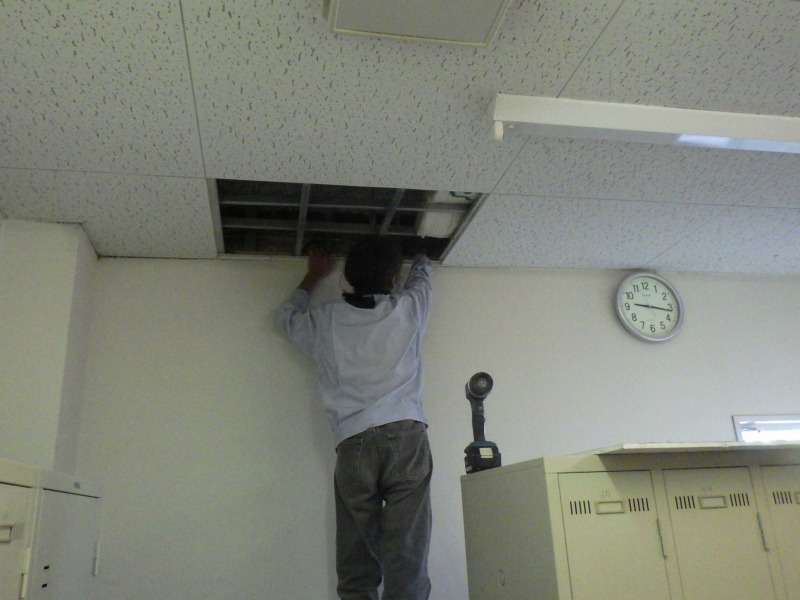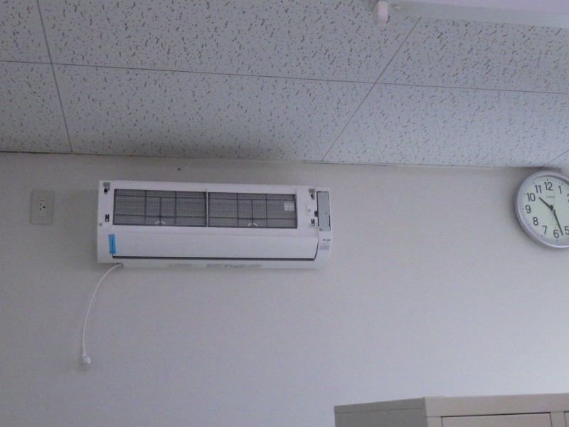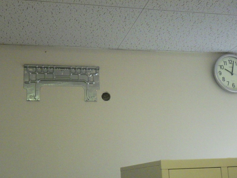 壁に配管用の穴を開けて、ユニットプレートとコンセントを取り付けて・・
