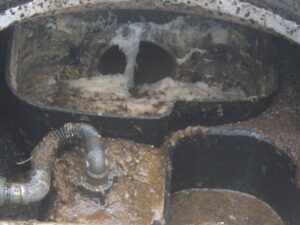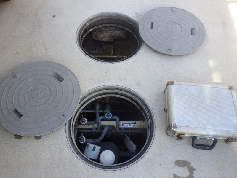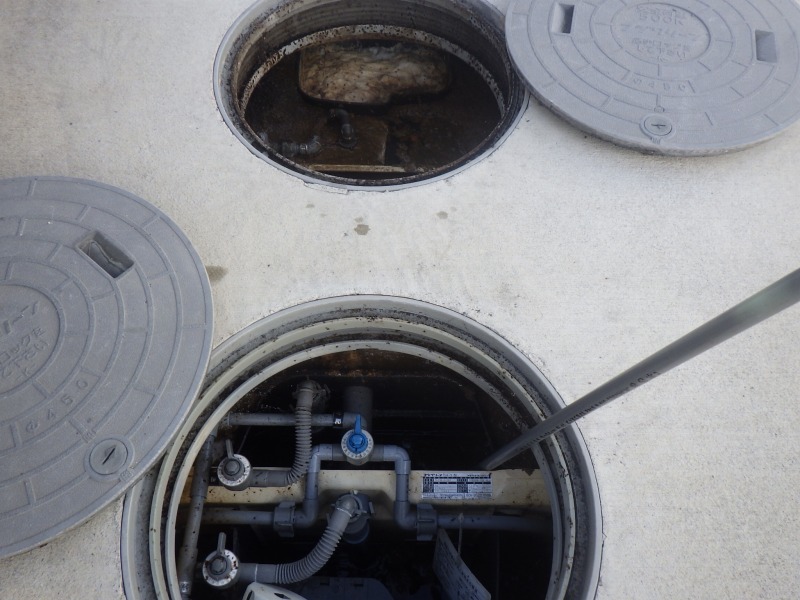 詰まっている場所は2室の底ですが、曝気槽も怪しい…